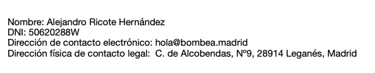 En cumplimiento con el deber de información, recogido en artículo 10 de la Ley 34/2002, de 11 de julio, de Servicios de la Sociedad de la Información y de Comercio Electrónico se informa de que el titular de la página web y encargado del soporte técnico e informático es (ver datos). Si desea contactar de una forma rápida y precisa puede hacerlo mediante el formulario de contacto que se encuentra en la página web.